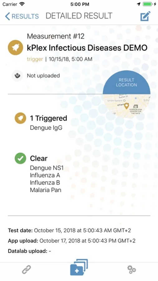 The MONDIALAB® PRO App is the link between the MONDIALAB® PRO Reader and the MONDIALAB® PRO Datalab. The App receives results from the Reader and displays result details and provides the option to enter additional patient data. Within seconds, it then automatically uploads these results to the Datalab. Test data is supplied with time stamps and GPS localization. The MONDIALAB® PRO App works solely with the MONDIALAB® PRO Reader.