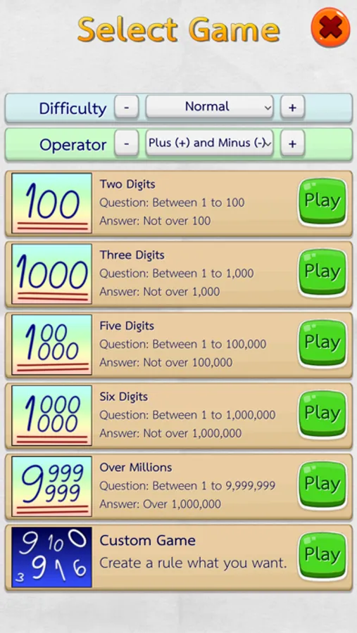 • You can choose difficulty levels