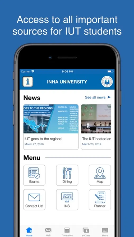 IUT Mobile lets the students view educational timetables and exams, access mail and e-class, request important documents (Transcripts, Certificates of Enrollment, etc.), and stay on track with the help of the personal planner. Access your schedule easier than ever before with a personalized widget!