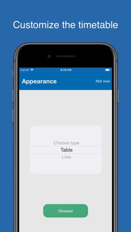 1)To be able to view your timetable, first you should choose your group after registration. Or, if you haven't done so yet, navigate to 'More' section, where you can customize the group and timetable appearance.