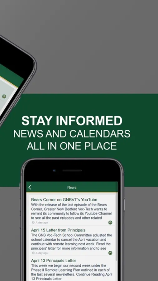 With the Greater New Bedford Vocational District mobile app, your school district comes alive with the touch of a button. Easily navigate through current news and events or check out the latest updates with social media. Quickly retrieve contact information, sporting scores, lunch menus, and more! It’s your school district available at your fingertips.