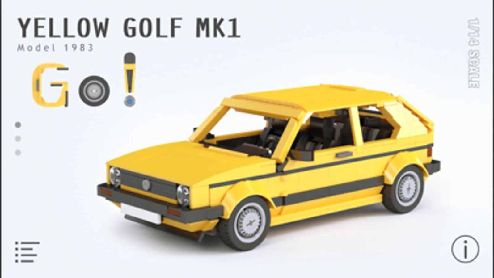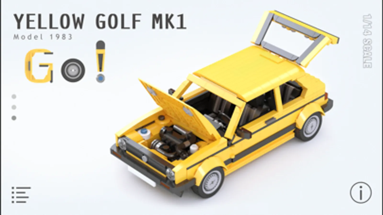 Build this scaled model of VW Golf Mk1 using our building instructions. The model features 1/14 scale, opening doors, trunk and hood.