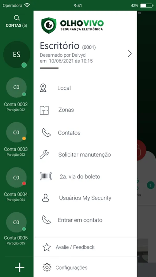 O Olho Vivo Segurança é um aplicativo móvel onde o cliente monitorado pode acompanhar diretamente via celular ou tablet todas as atividades do seu sistema de segurança. Por meio do aplicativo é possível saber o status do painel de alarme, armá-lo e desarmá-lo, visualizar as câmeras ao vivo, verificar eventos e ordens de serviço abertas e realizar chamadas telefônicas para contatos cadastrados no seu perfil. É a segurança que você precisa na palma da sua mão.