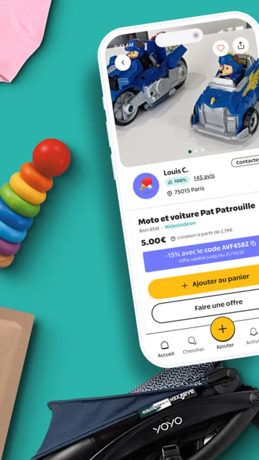 Access thousands of products (clothes, toys, strollers, furniture...), sold now or used by other parents like you. Pay and get shipped instantly directly through the app, and enjoy a convenient, one-click buying & selling experience, while shopping smart and doing the right thing for our planet.