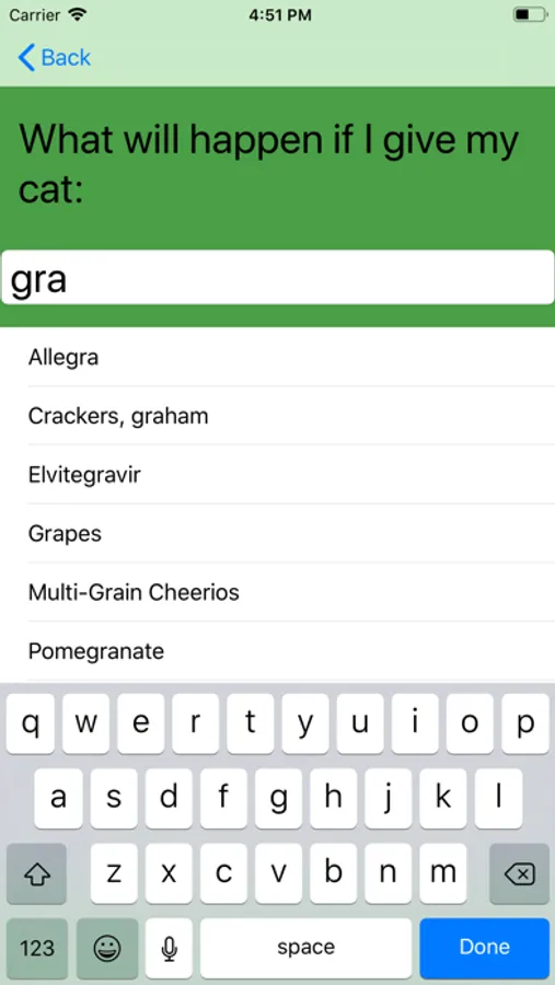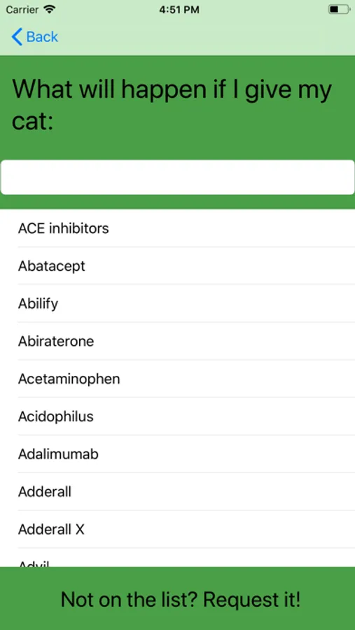 The application is simple to use and generates whether a medication or food is appropriate to give to a dog or cat. The application gives the symptoms of inappropriate choices as well as the average veterinary bill incurred when an owner accidently gives their dog or cat a dangerous drug or food item.