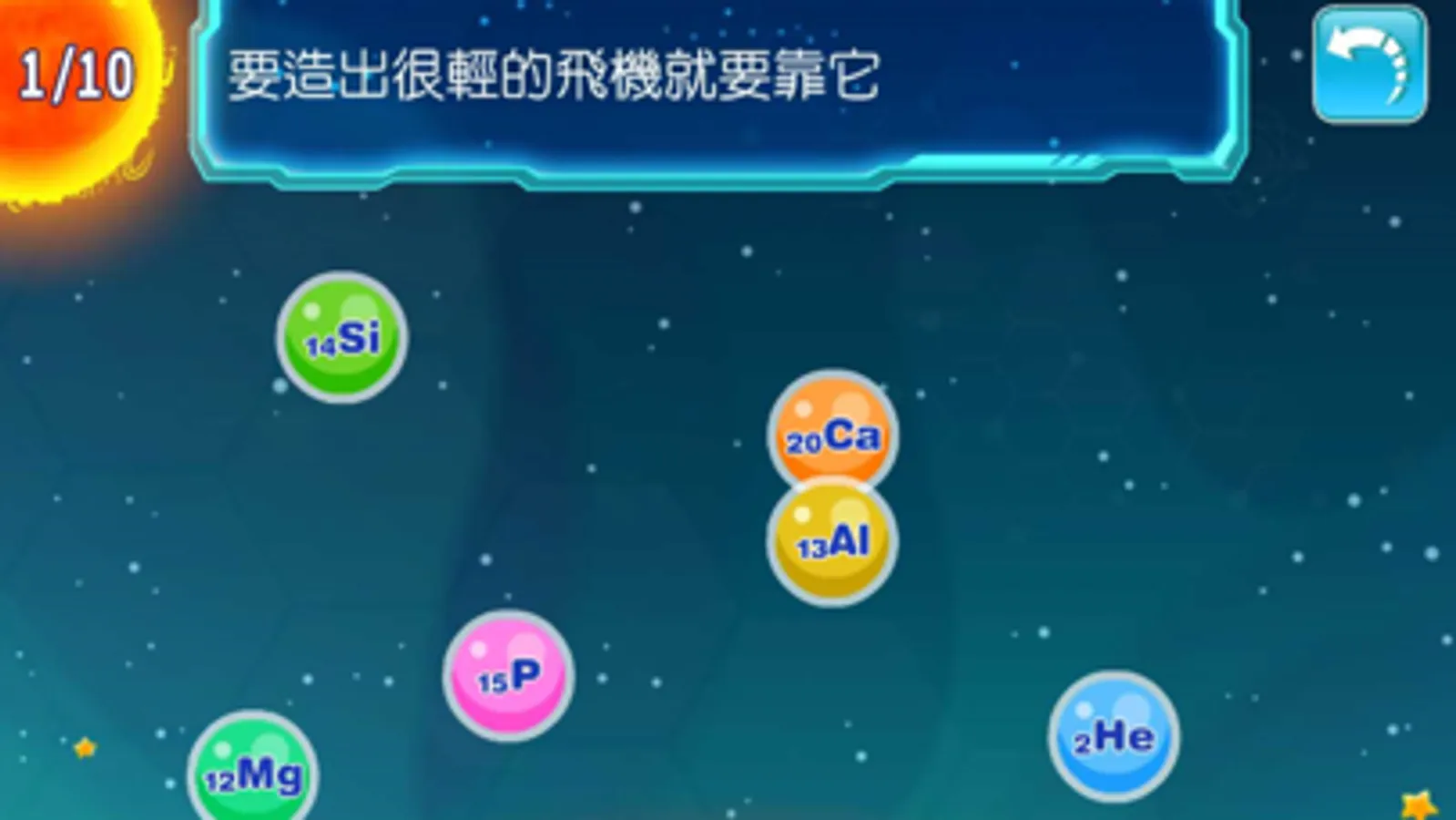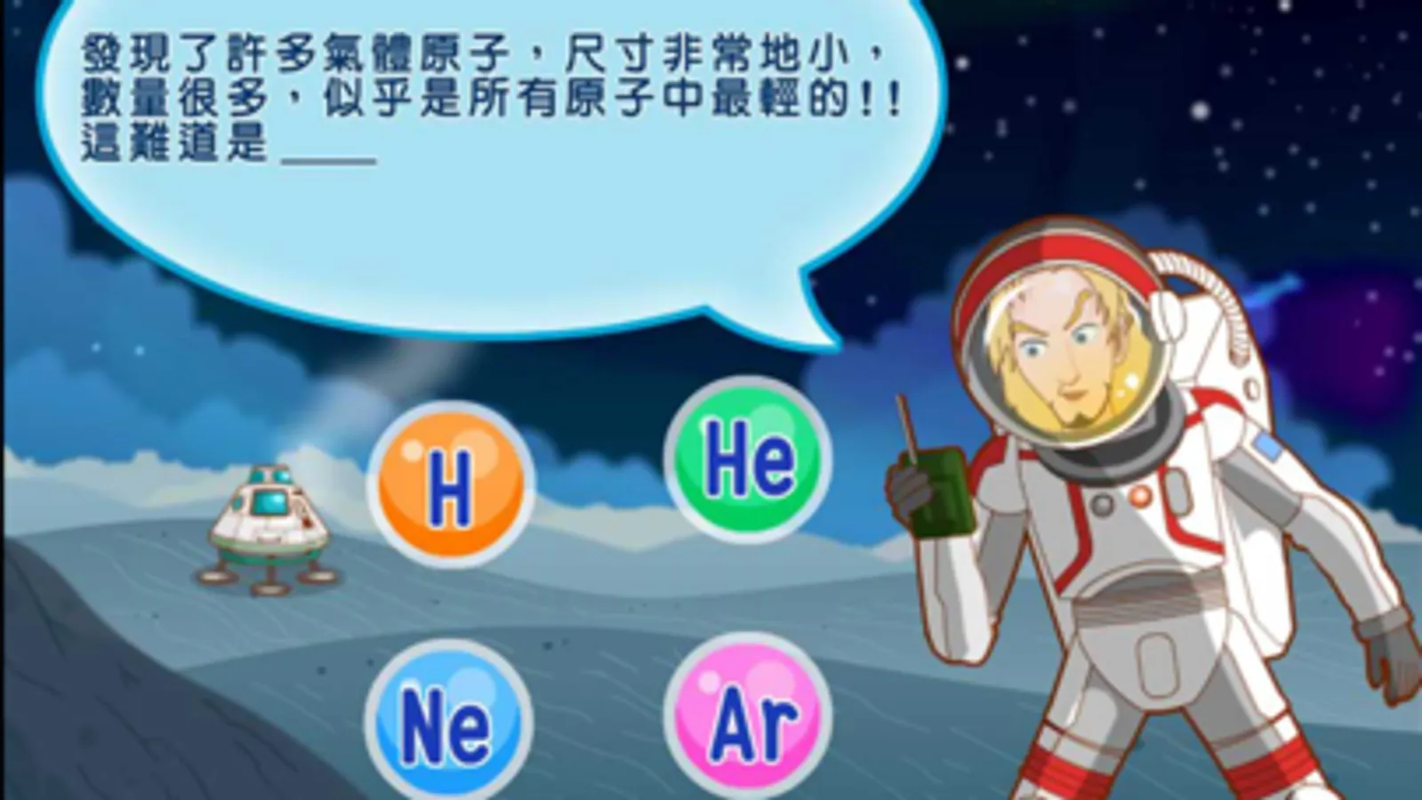 1. 入門題:以高中學測必考的20種元素設計,點擊題目所敘述的元素星球,精準掌握元素的獨門絕活!