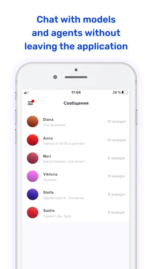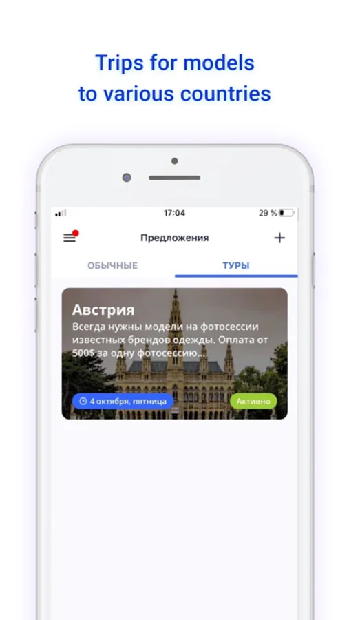 The application allows you to create a proposal and automatically select models according to several criteria. After the model receives an offer, she has the right to accept it or refuse to work.