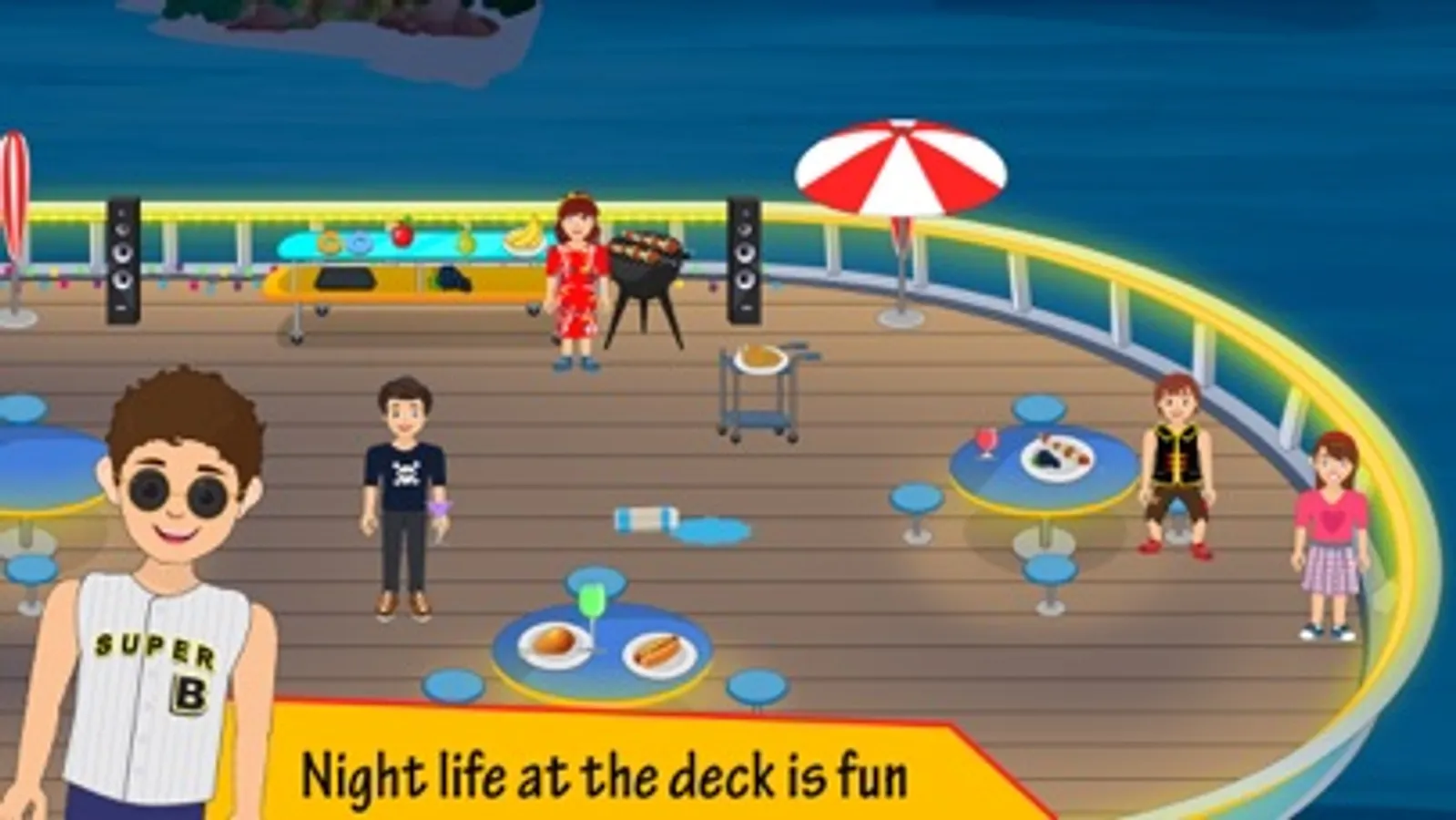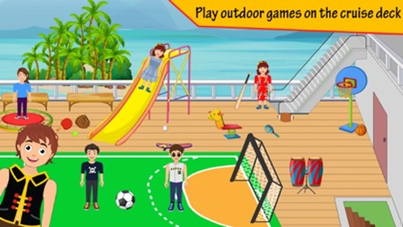 Pretend play cruise trip is a unique, open ended and imaginative role play game where you can discover different roles like be the ship captain, passenger, restaurant chef or just a curious explorer. In this cruise vacation you can arrange and manage a lot of stuff like manage restaurant, enjoy playground area on deck and operate ship in control room.