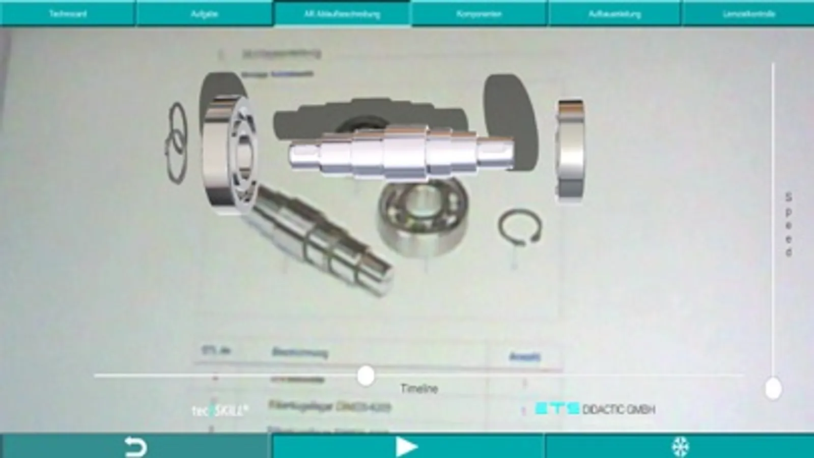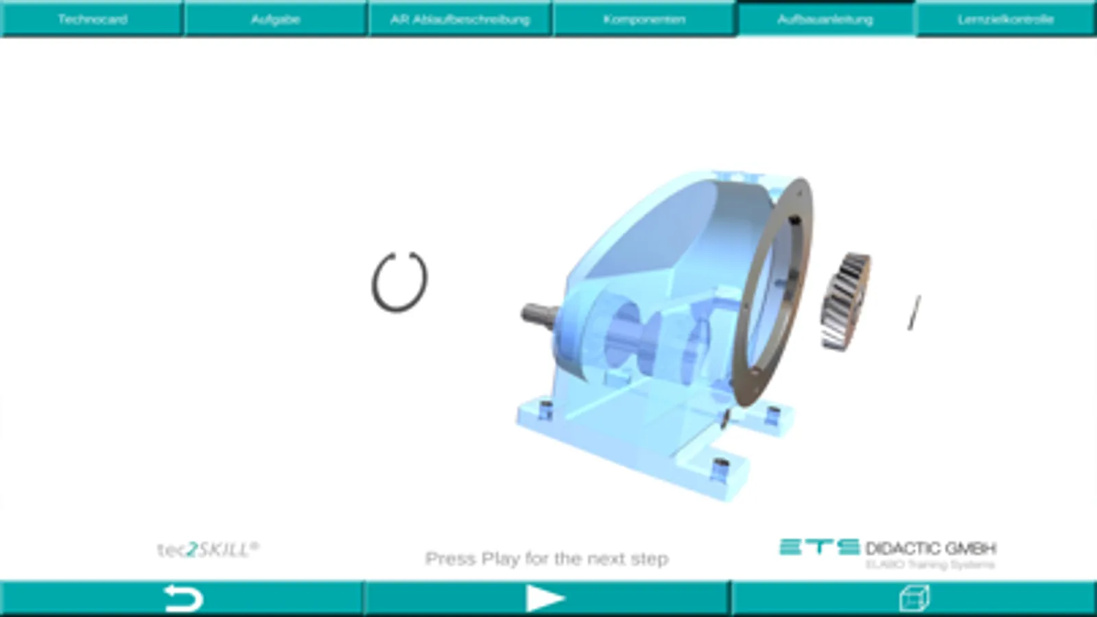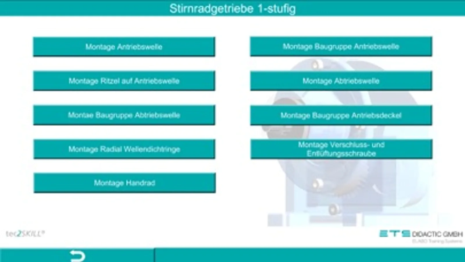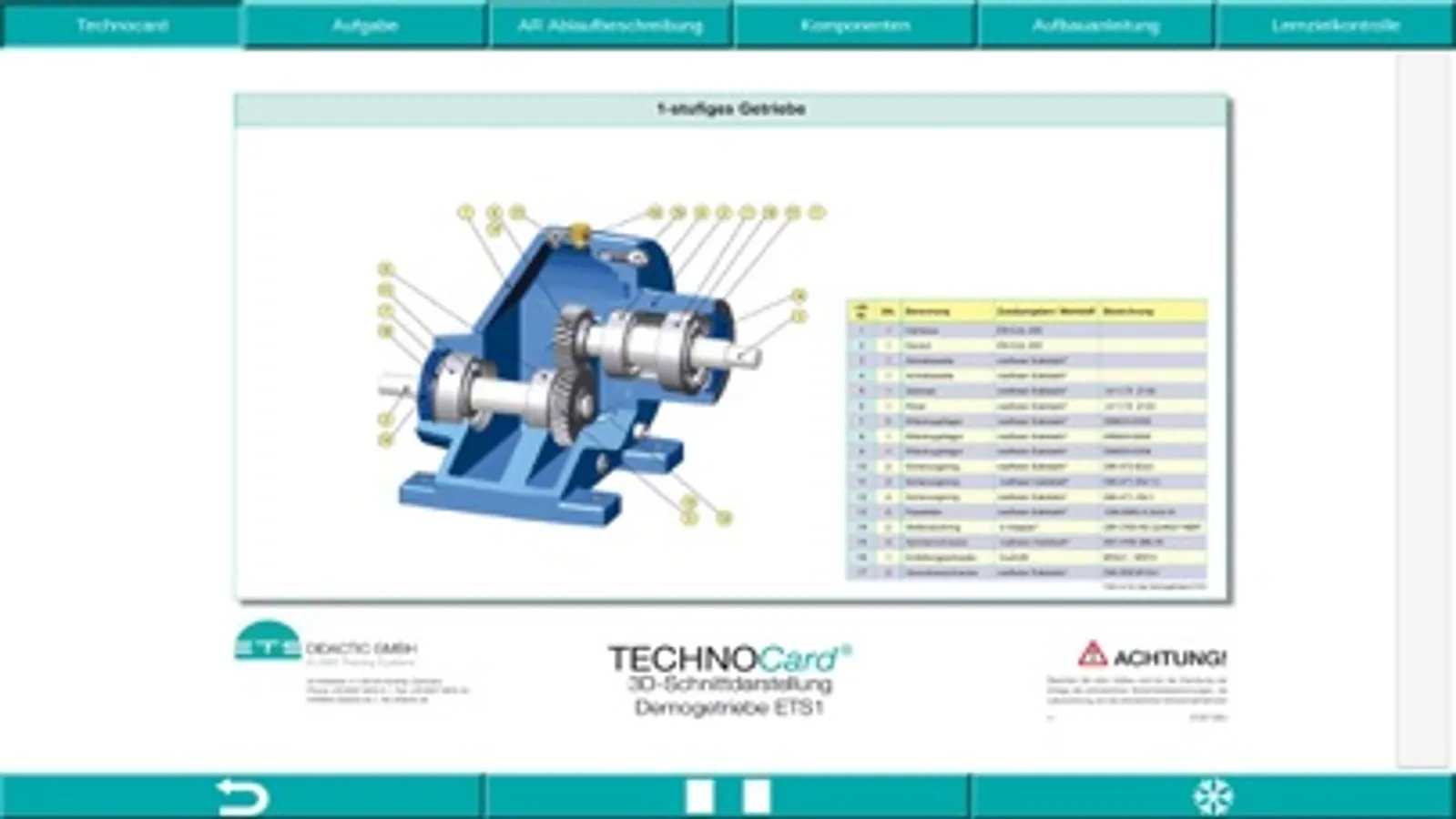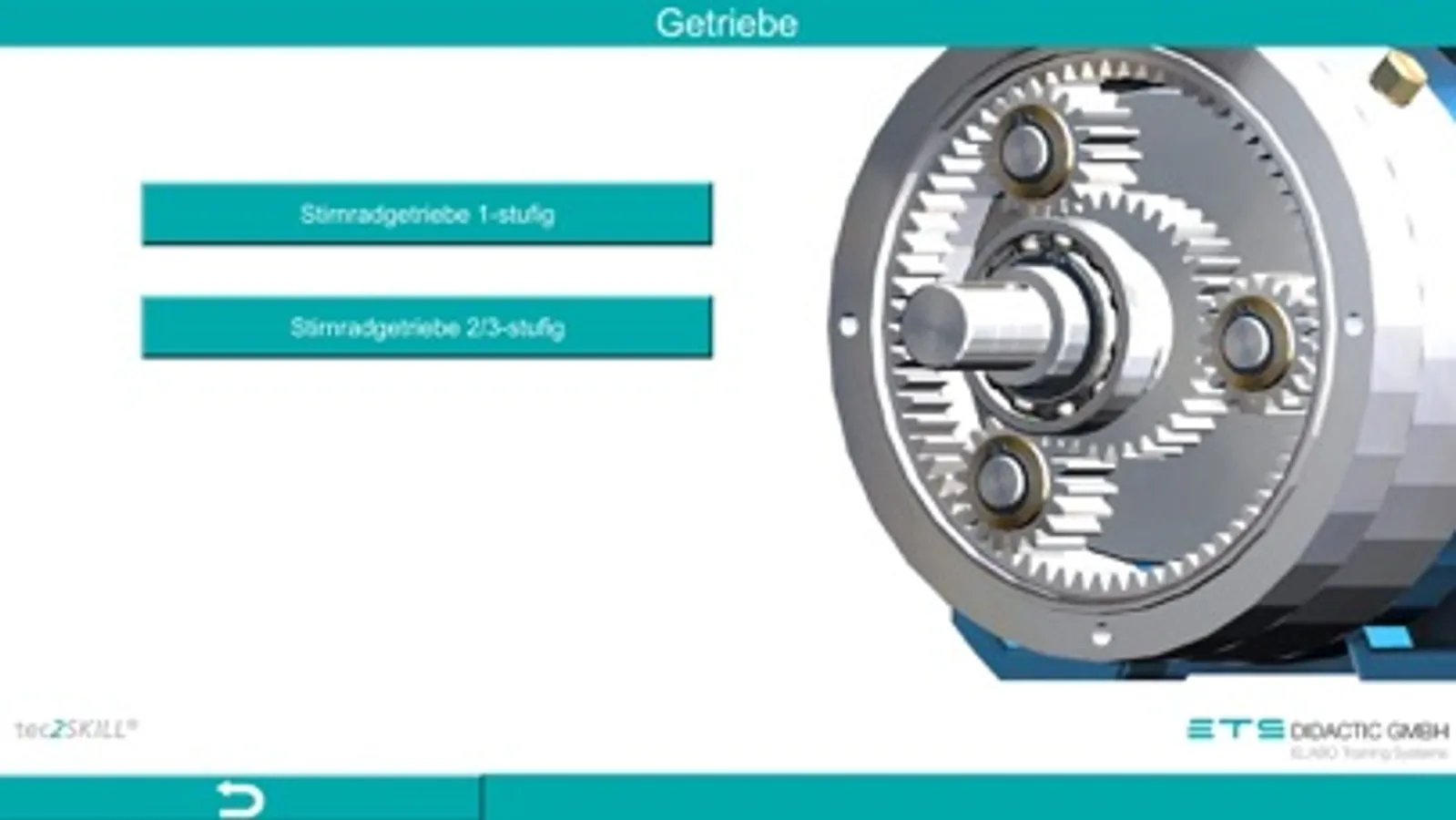 Die Lernanwendung tec2SKILL® Mechanical 2 ist ein digitaler Assistent zur didaktischen Unterstützung im Bereich der Getriebetechnik. Es werden industrielle Getriebe-Bausätze von der ETS DIDACTIC GMBH unterstützt.