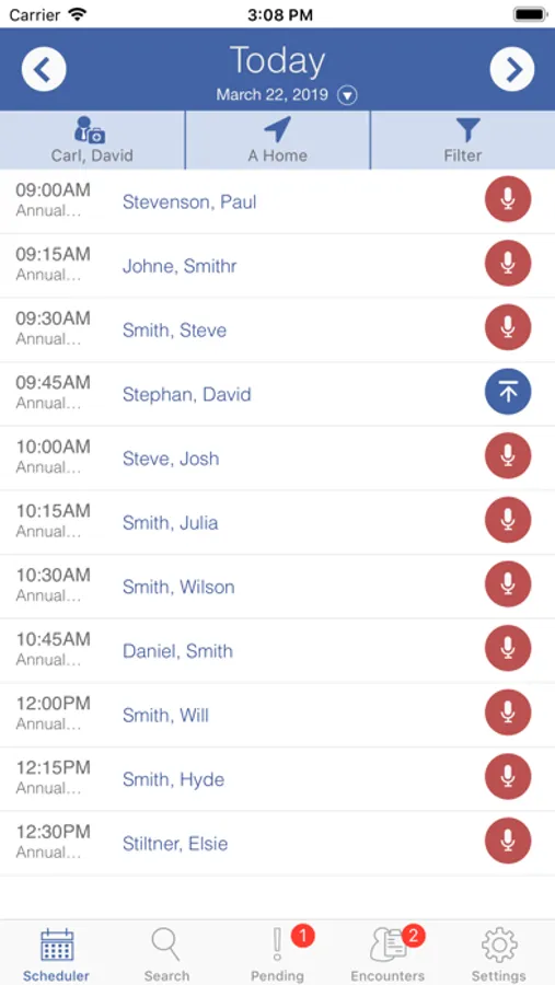 6) Search a patient name, and record the transcription to an appointment of that patient.