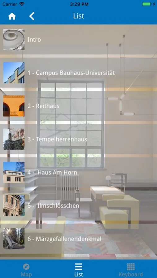 The audio walking tour, “Where is Walter?” is divided up into seven tracks and embarks on a search for traces of the first Bauhäusler and their works. The different tracks can be heard in any order, independently of one another. In just less than an hour, Track 1 leads you to the most important Bauhaus sites on the university campus. In addition, there are 5 shorter tracks at other positions throughout town, where Gropius and Co. left evidence of their work. All the positions can be reached on foot or with public transportation. A walk through the Park on the river Ilm leads to the Reithaus (Track 2), where László Moholy-Nagy taught the preliminary course, to the Tempelherrenhaus (Track 3), which Johannes Itten used as his atelier. The House Am Horn (Track 4) that was built as a model home for the Bauhaus Exhibition in 1923, is also accessible by walking across the park, as is the restaurant “Ilmschlösschen” (Track 5), in which parties already took place during the Bauhaus years. Track 6, on the other hand, is concerned with the Bolt Monument at the Weimar Central Cemetery, which is the only built object designed by Walter Gropius in Weimar. A bonus track (Track 7) reveals “Walter’s Vision”.