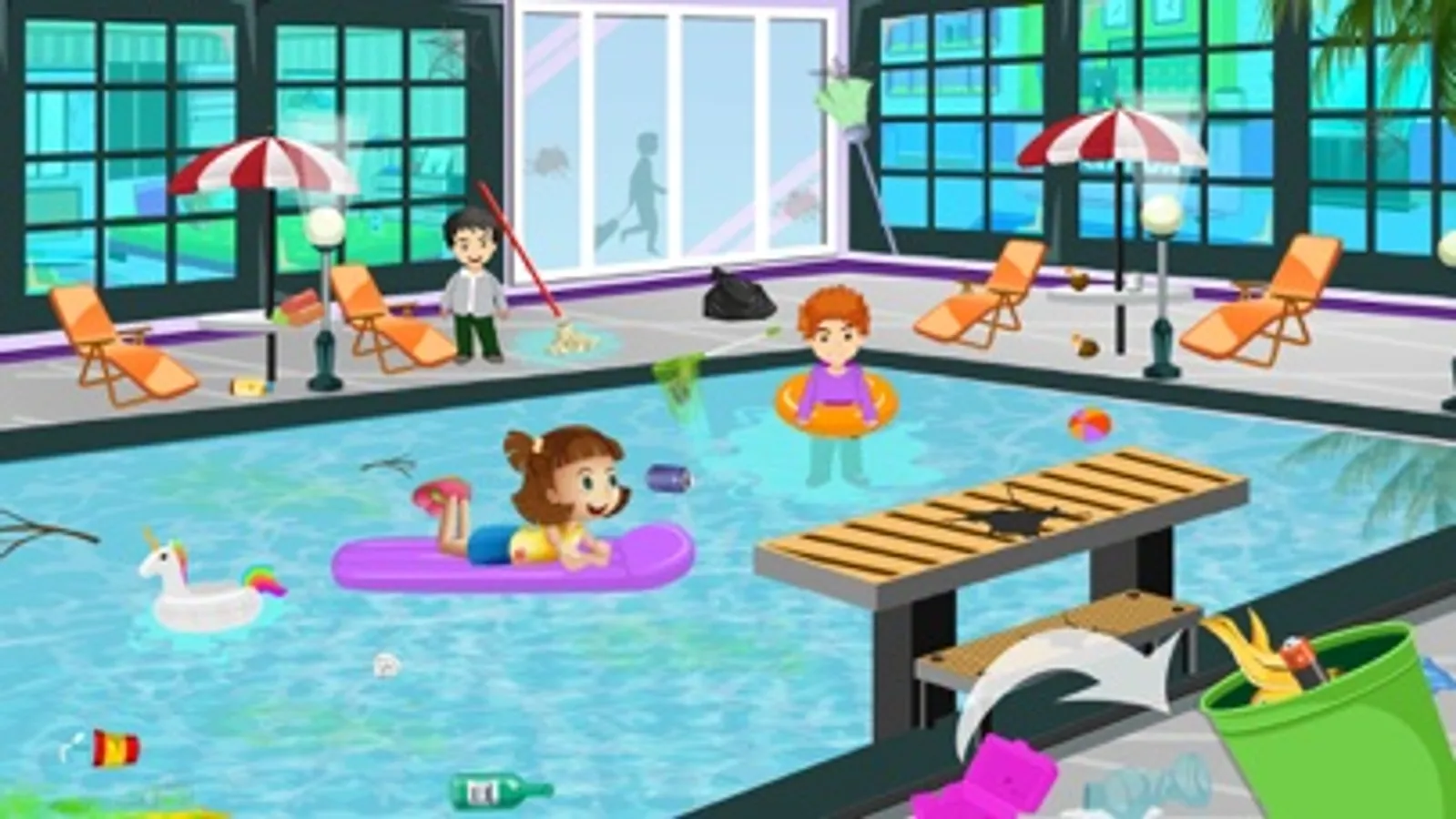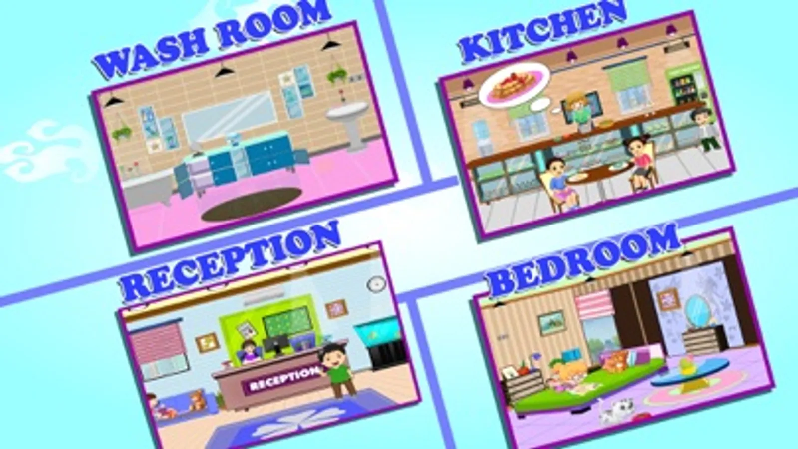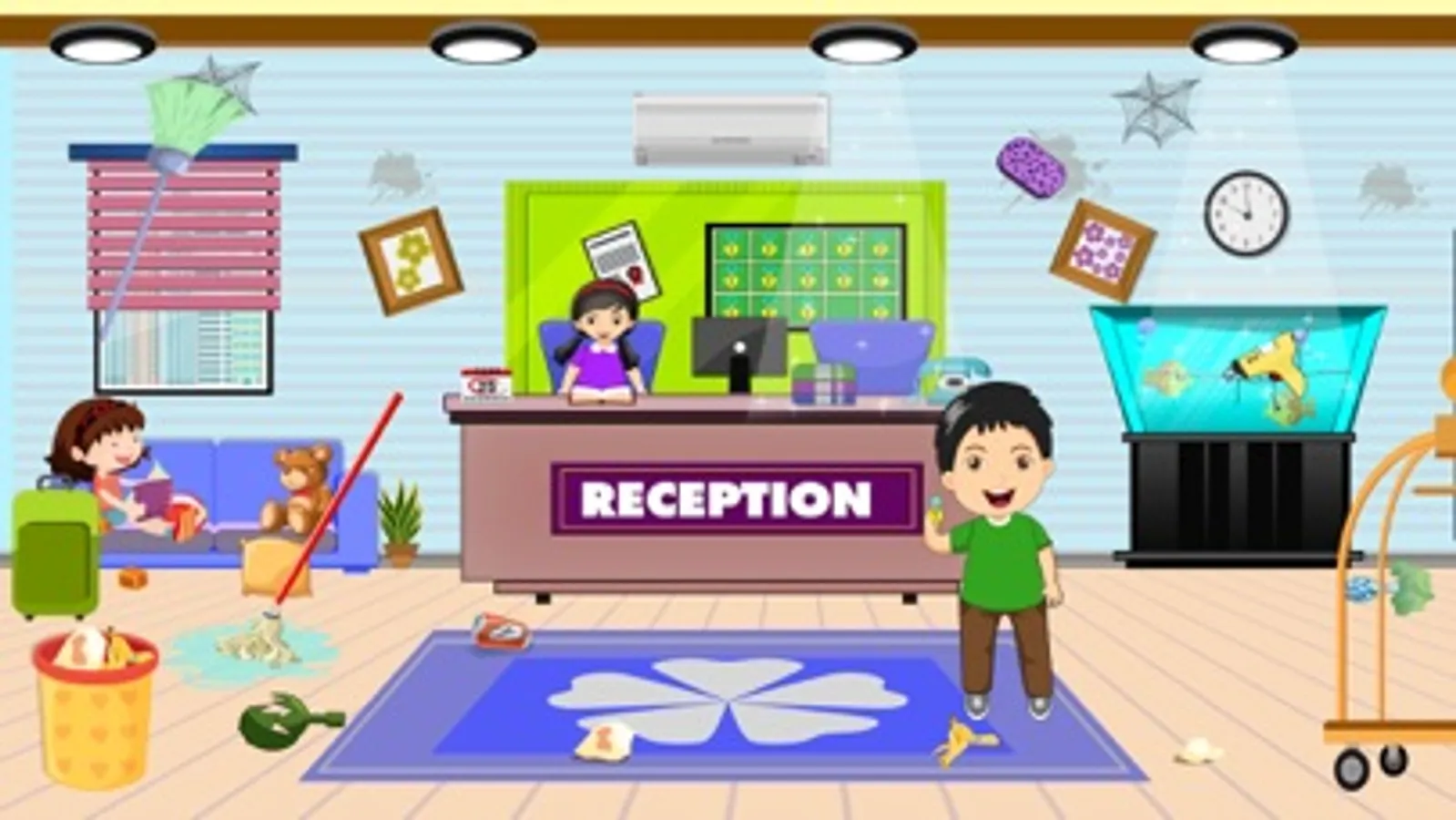 Pretend Play Hotel Cleaning is a multi activity performing game where you can use your imagination to manager hoteling business. Also make sure to clean different rooms removing garbage items and mopping the floor. Rearranging the scattered items to make it look neat & clean.