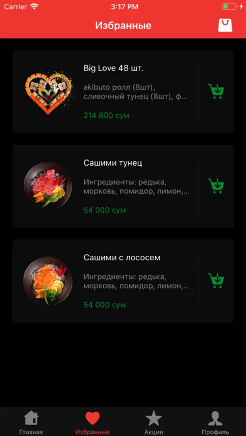 - подробное меню с фотографиями и описанием блюд;