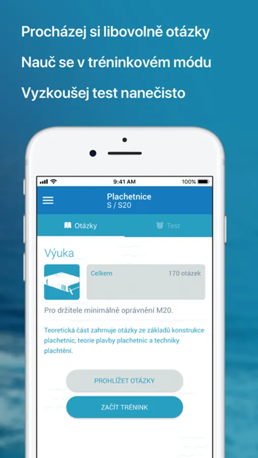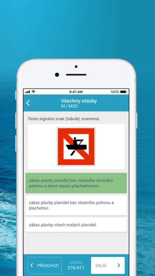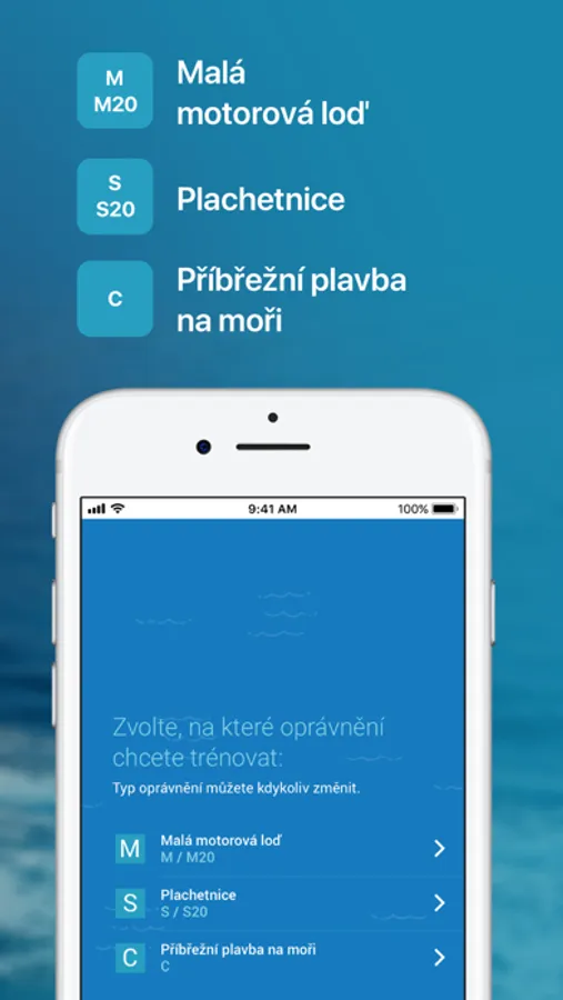 Aplikace vám pomůže s přípravou na teoretickou zkoušku pro získání průkazu „Vůdce malého plavidla” v kategoriích: