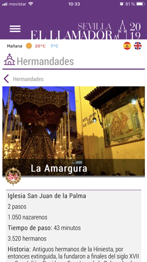 EL LLAMADOR DE SEVILLA 2019 es una aplicación sobre la Semana Santa de Sevilla donde encontrarás toda la información sobre las hermandades, los horarios e itinerarios y un servicio de geolocalización para conocer en tiempo real la situación de cada cofradía. Desde la aplicación podrás escuchar las transmisiones de El Llamador, ver la programación de Semana Santa de ATV y Canal Sur Televisión y estar al tanto de todo lo que se publica en las redes sociales