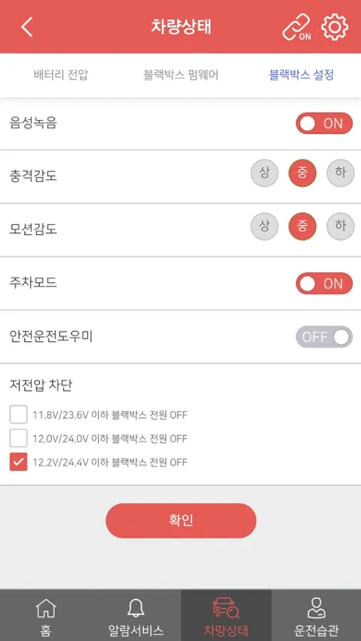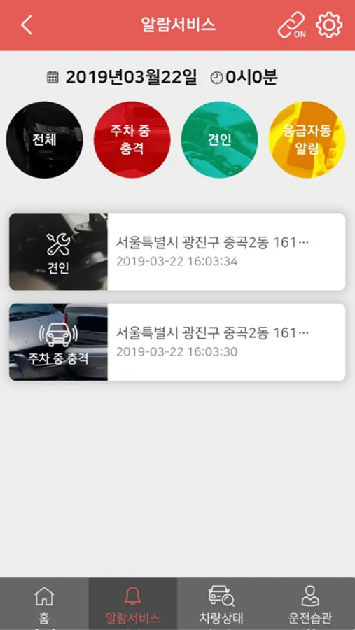 주차 중 차량 충격 발생 시 차주 스마트폰 앱으로 실시간 알람 및 충격 당시 알림을 전송해 상황을 확인할 수 있습니다.
