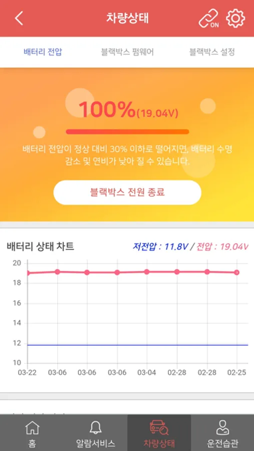 비정상적인 배터리의 동작 기능 이상 시, 블랙박스의 전원을 제어 합니다.