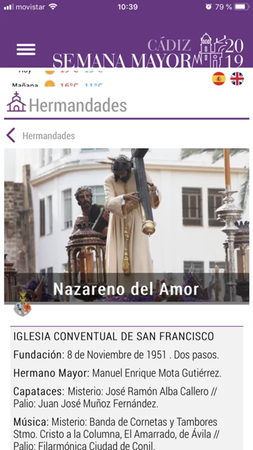 SEMANA MAYOR es una aplicación sobre la Semana Santa de Cádiz donde encontrarás información sobre las hermandades y sus recorridos procesionales.