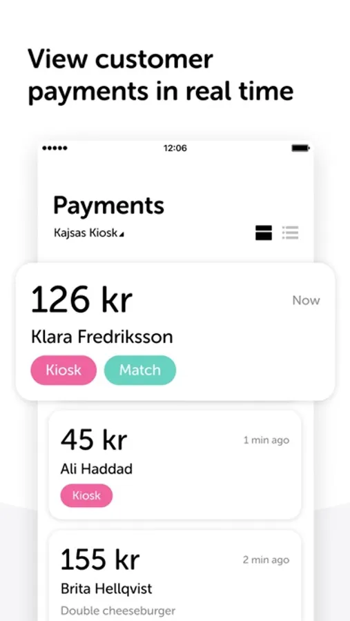 The Swish business app makes it easy for companies using Swish as a payment method. In the app you can charge your customers and get an overview of your sales, regardless if you are a part of an organisation, a smaller company or an association. As an administrator, you can create sales shifts that you share with your staff.