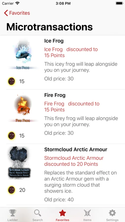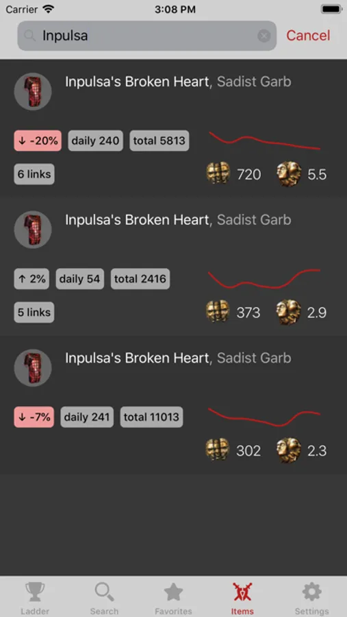 - Display a character inventory overall price and compare it to other favorites