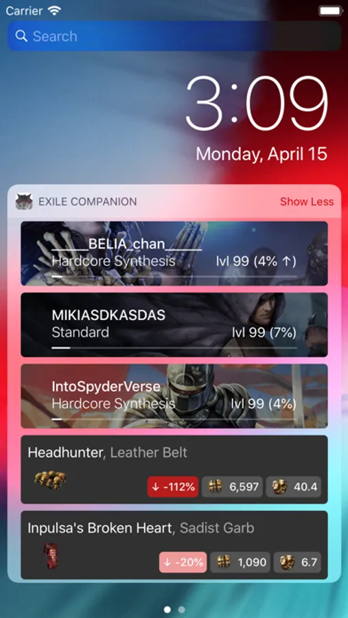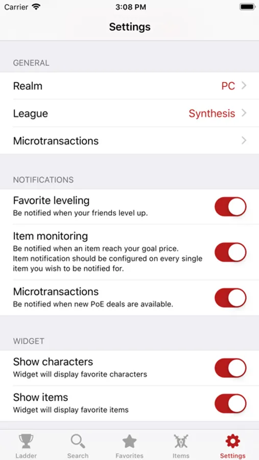 - Widget for favorited items/characters