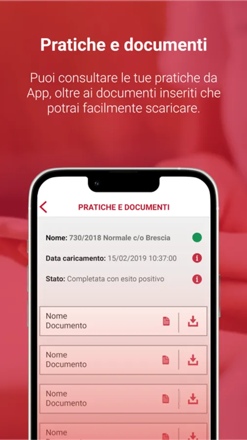 • Consultare, caricare e scaricare i documenti relativi alle tue pratiche;
