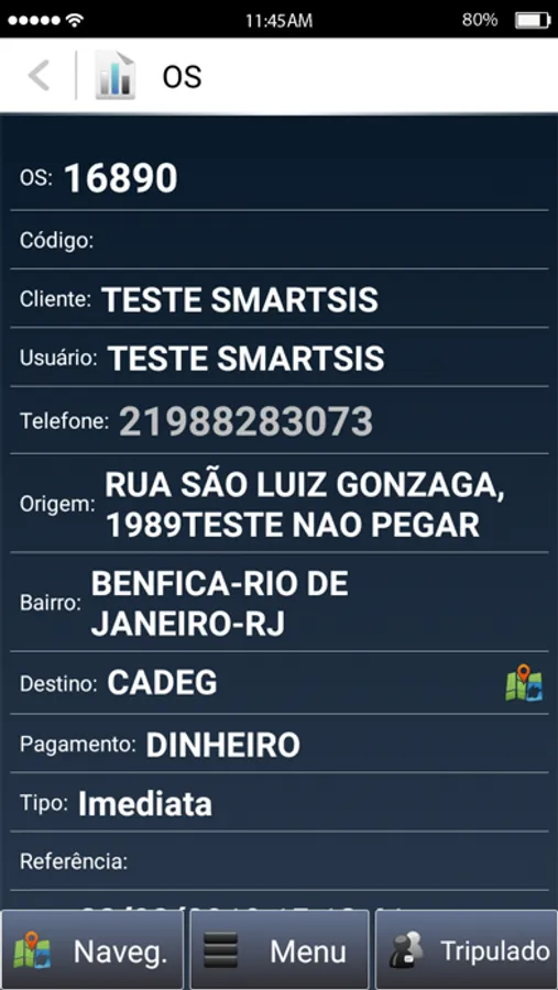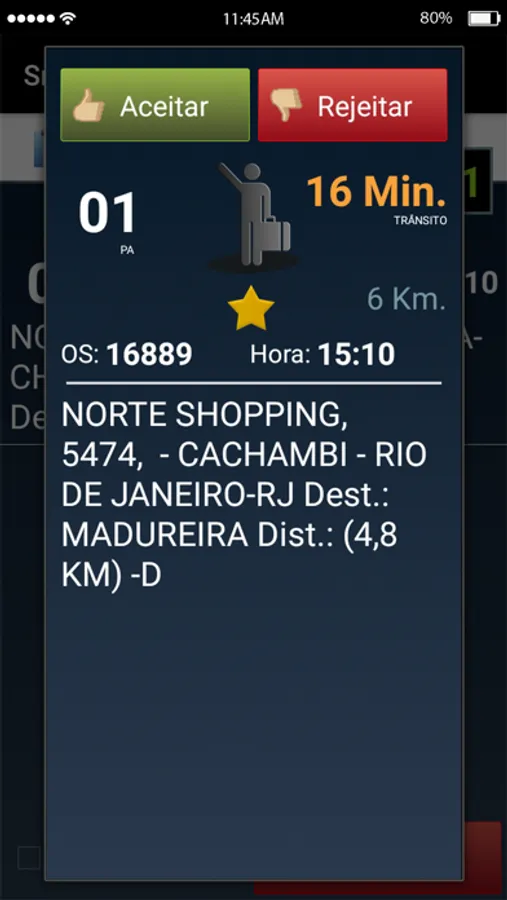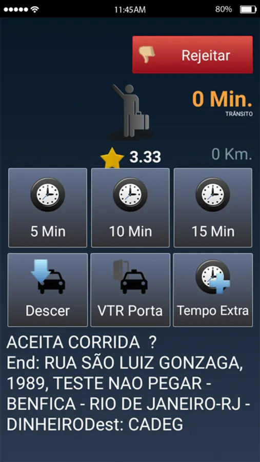 - Dados relevantes da corrida/chamada recebida;