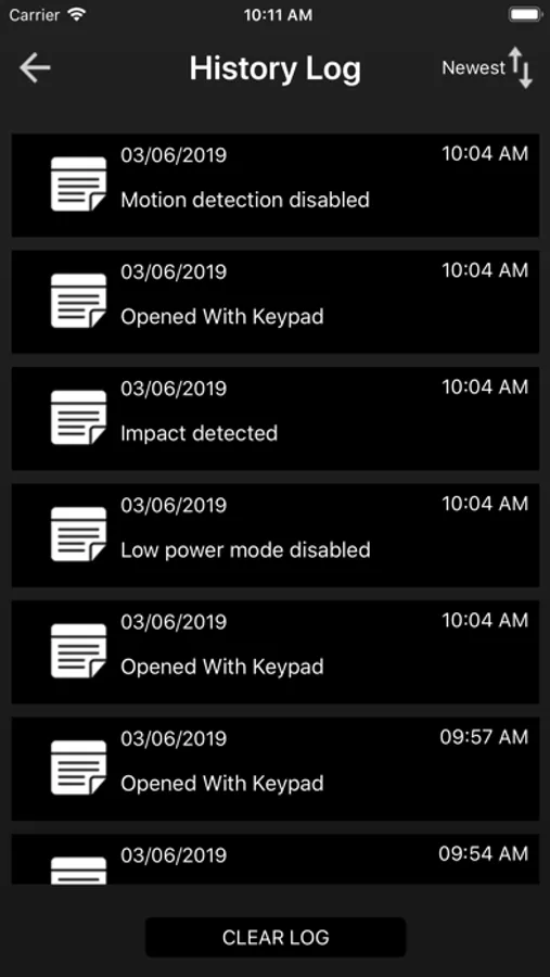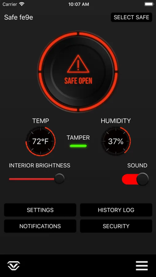 - History log tracking for all safe events and activity
