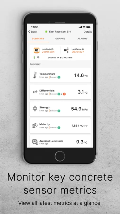 - Interact with real-time and historical data through temperature, maturity and strength graphs
