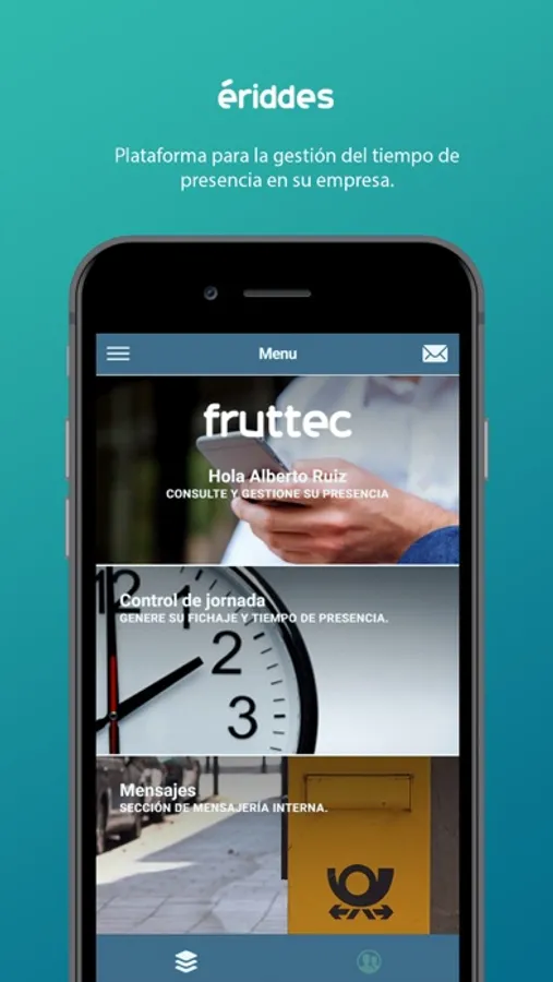 El complemento perfecto para Fruttec ERP o Ériddes Control de presencia y producción. Envíe mensajes a los trabajadores de la empresa, como por ejemplo horarios o la aprobación de vacaciones.