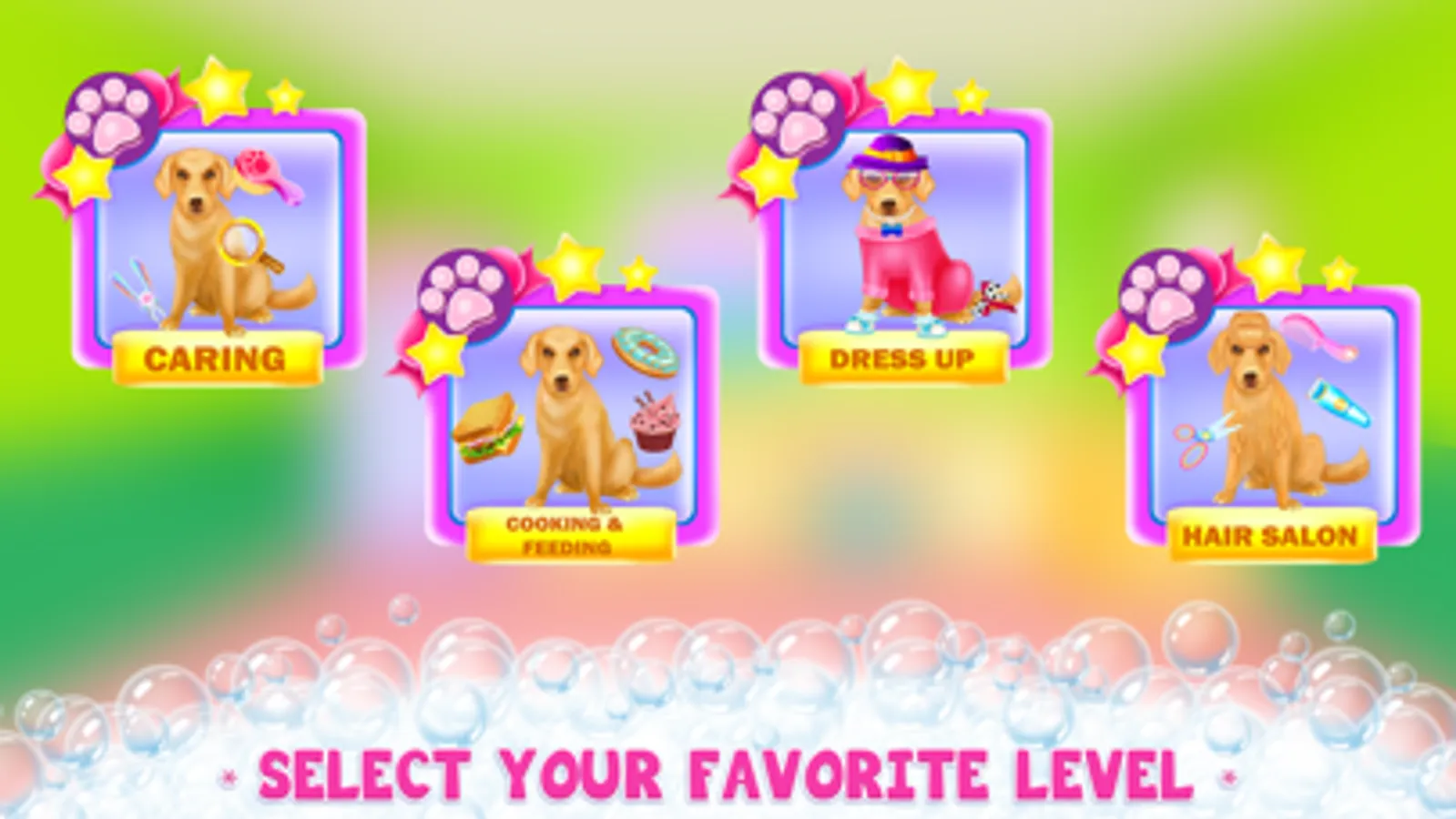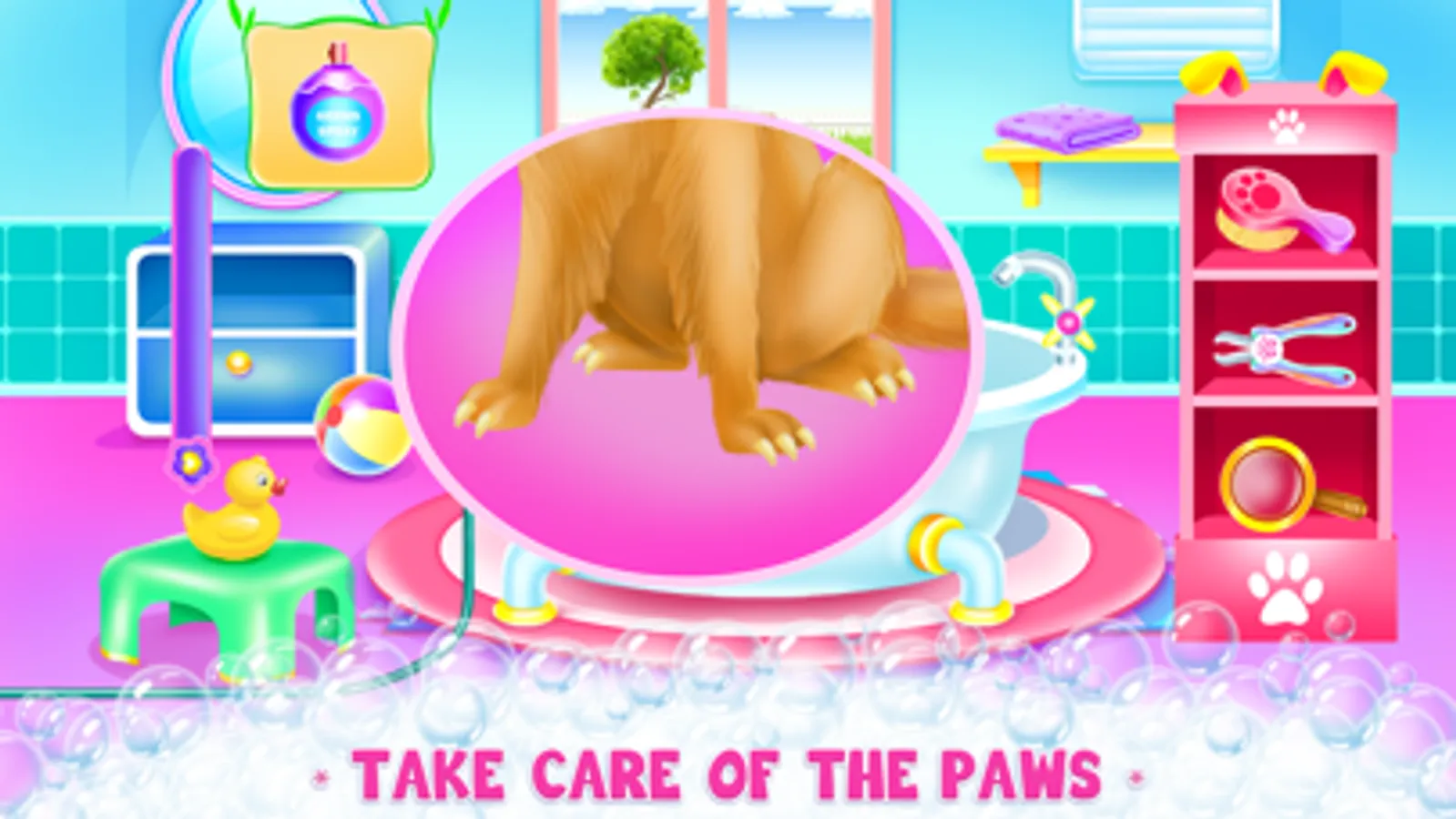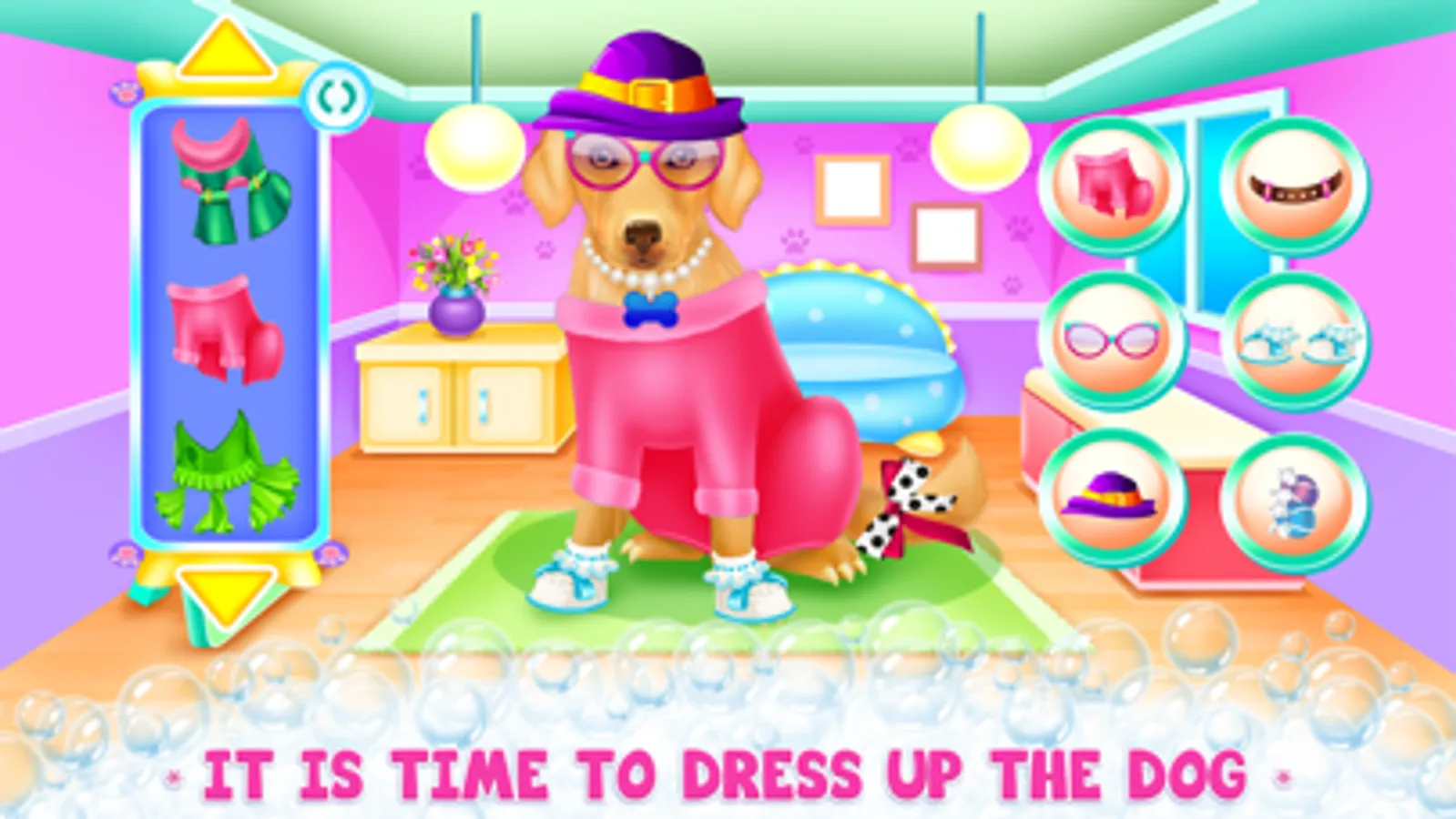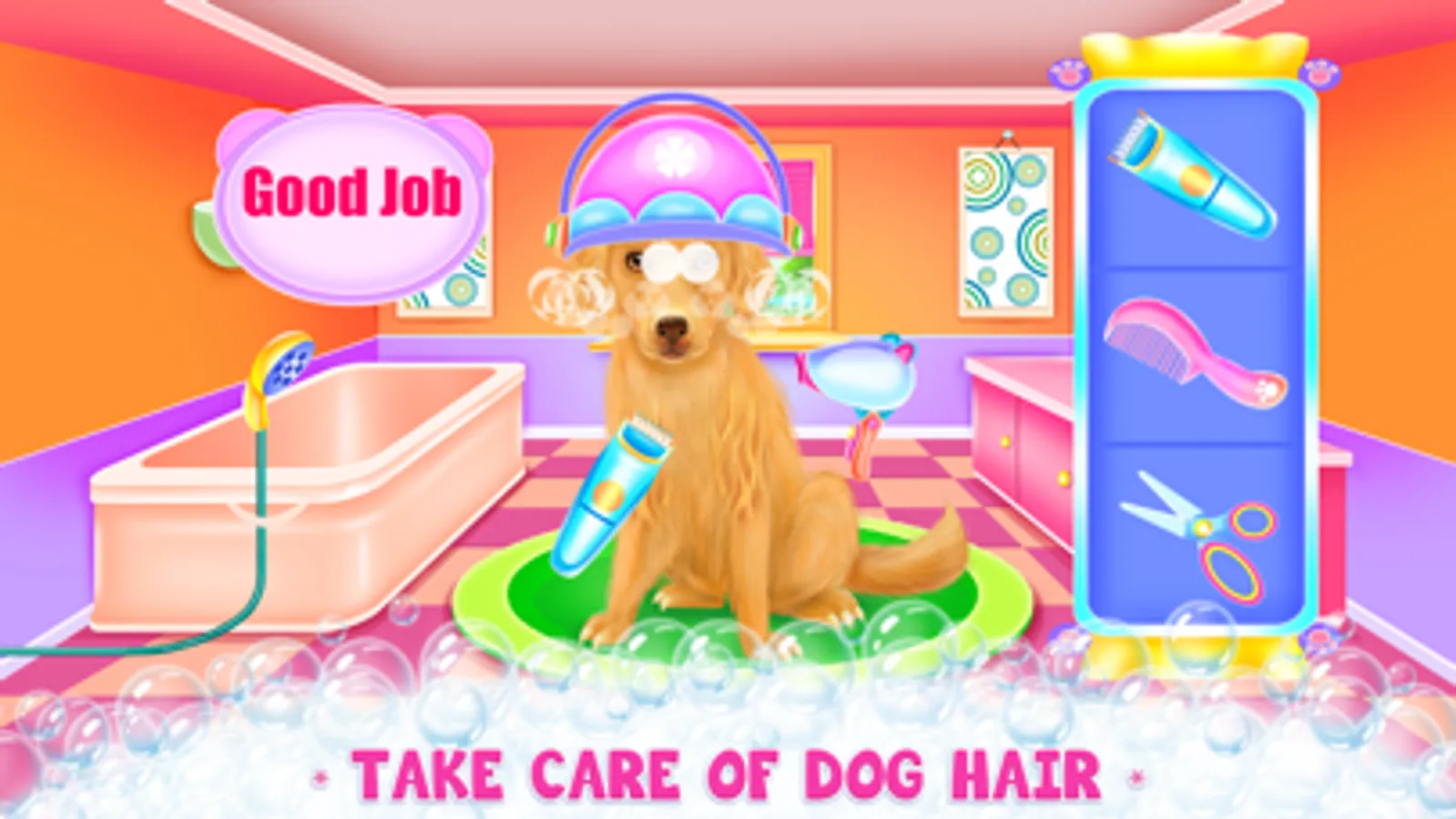 Choose a lovely experience with this caring game of ours and take your chance to help out a messy dog. Perform relaxing activities and make sure you offer an unforgettable day for this beautiful lady labrador. There will be some tricks you will see and you will have instructions for them in case you want to learn them. First will be the caring and bathing process. Fill a big bathtub and get the lady labrador in. Wash each part of the body with suitable products, like soap for the body and shampoo for the hair. You could cut her claws and when she is dry you will move to the hairstyling. Arrange the hair, cut it, paint it and make her look fresh with her brand new headdress. Wash her hair again and use the hair dryer to style it. Now, after a long bath and the hair styling, the necessity for food is showing up. To be able to complete this step you must cook the food. Make a delicious sandwich with cheese and meat. You will feed her and make sure you offer a diversified meal. A bowl of milk maybe some dog food, a cupcake or something else for dessert. Once the feeding is done you should be concerned about the dressing. We all know how important is the look for this fancy lady dog, so don't forget to add your touch in her style. Put on a nice outfit, maybe a dress that will be finished with a cute accessory. You might consider some matching shoes and even a colorful hat.