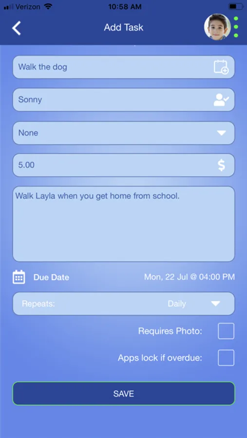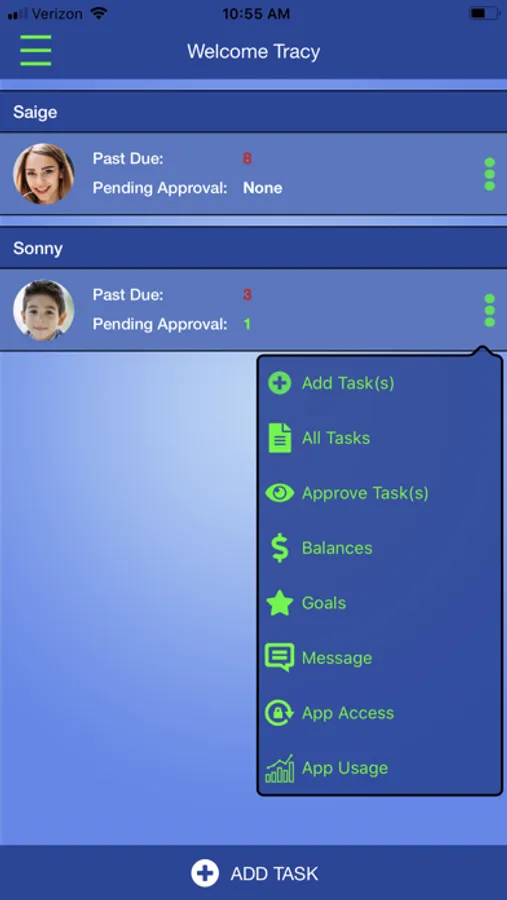 Parents can elect to block their children's apps if tasks are past due as well as manually block apps on their children's devices at any time, making parenting in the digital age a fair game!!