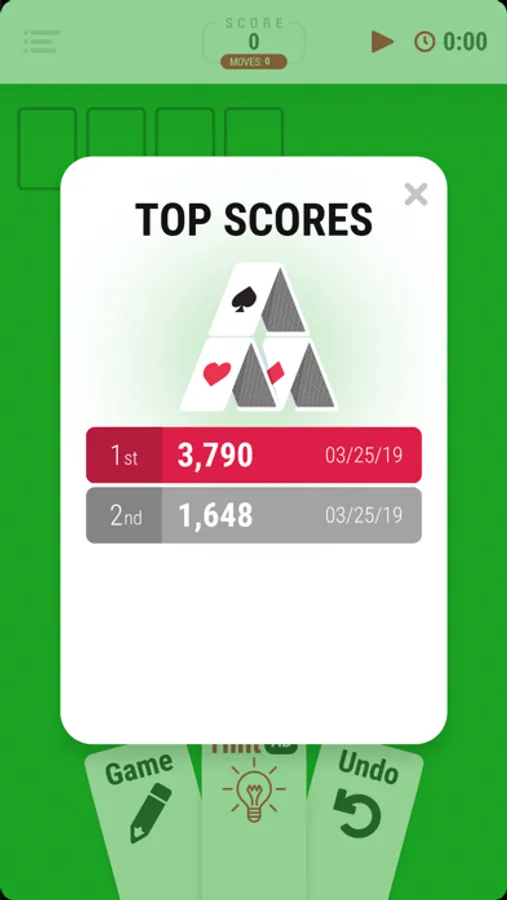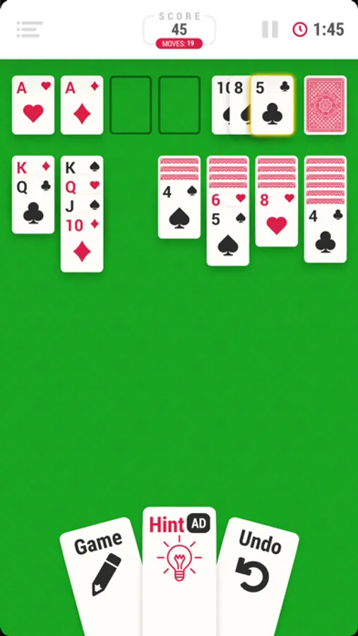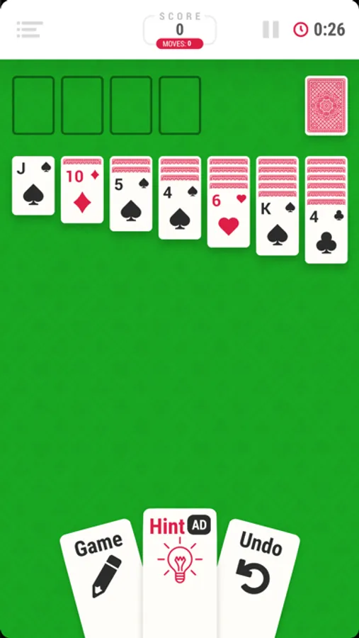 If you get stuck during a game, then watch a quick video for a simple hint to get you over a bump in the road and finish out your Klondike Solitaire hand. Or if the round is creeping closer to a dead end and you need a little extra help reaching the finish line, we built in an available game feature we call a "magic hint" which uncovers a card that you couldn’t quite get to on your own, in order to keep the hand alive.