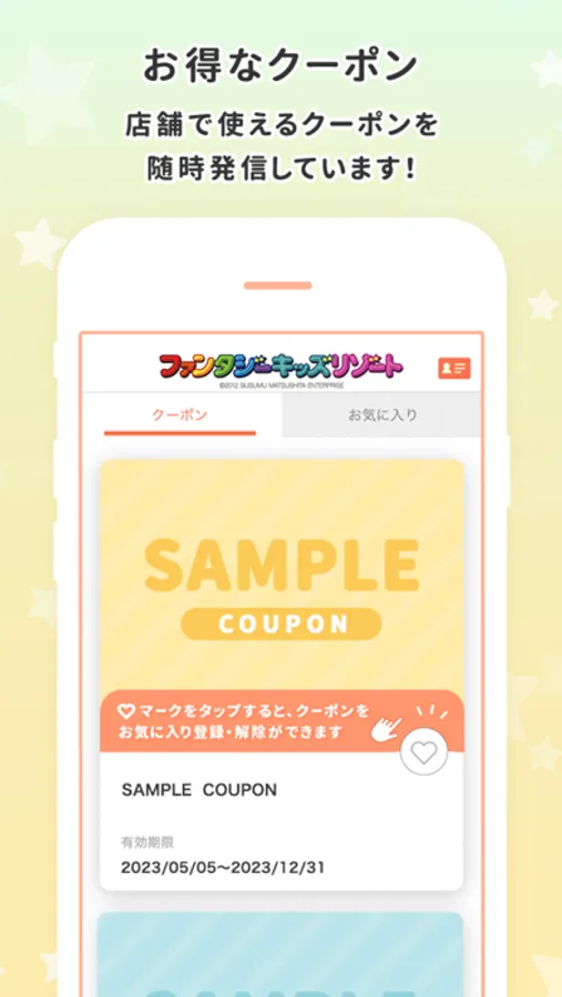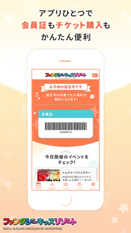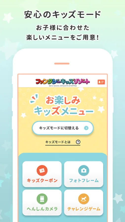 このアプリでは『ファンタジーキッズリゾート』の色々な情報やアプリユーザー限定のお得なサービスが手に入りますので、是非お試しください!