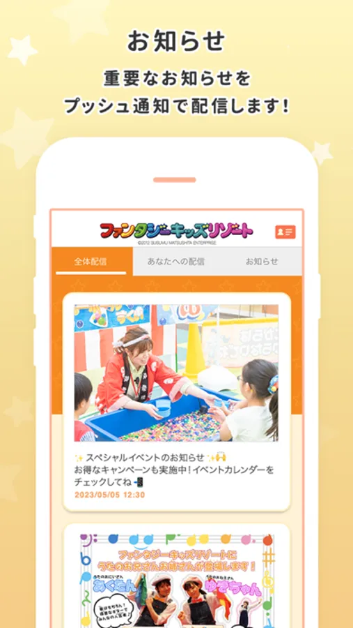 •『ファンタジーキッズリゾート』からの最新情報(ニュース)がプッシュ通知で届きます。