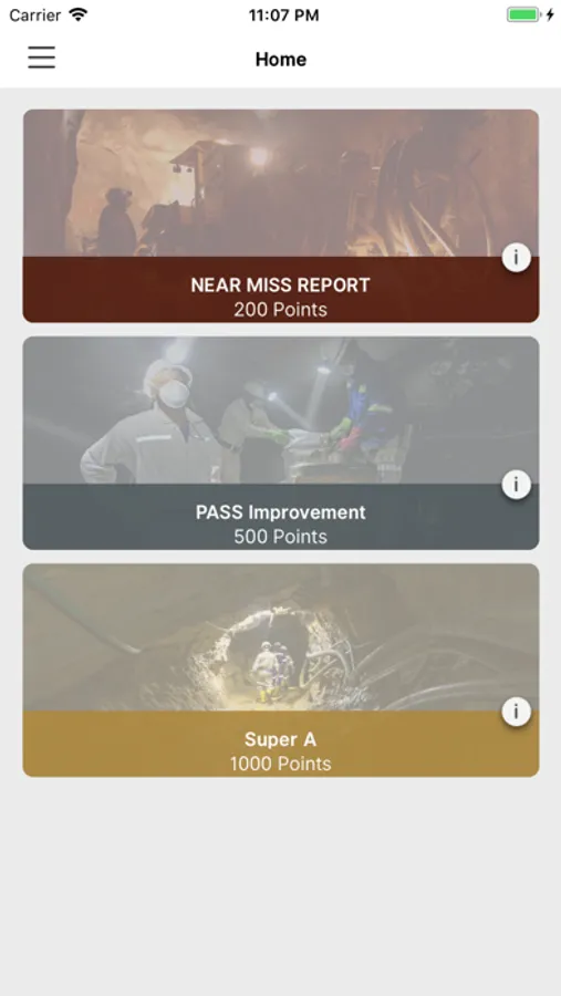 In mining whenever the supervisor observes an activity, for appreciating an employee he will allocate cards like Near Miss Report, PASS Improvement,