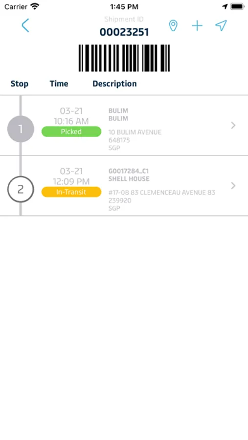 - View the list of shipments and detailed information on each;