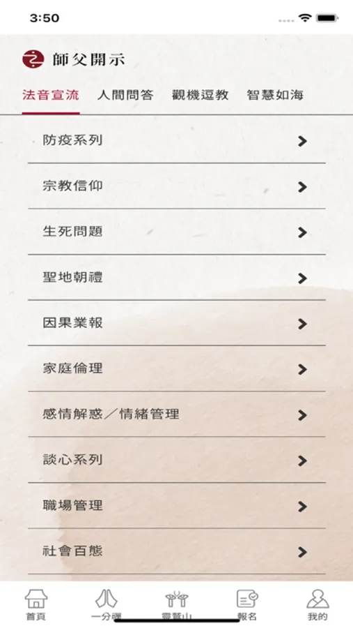 2. 師父開示:豐富的心道師父開示影音,跟著善知識的指引,隨時走在正確方向。