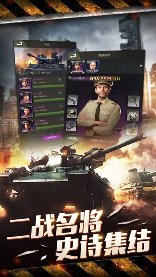 3.将领养成:通过升级、特训、晋升等等不断提升将领能力,加强部队能力,提审自己;