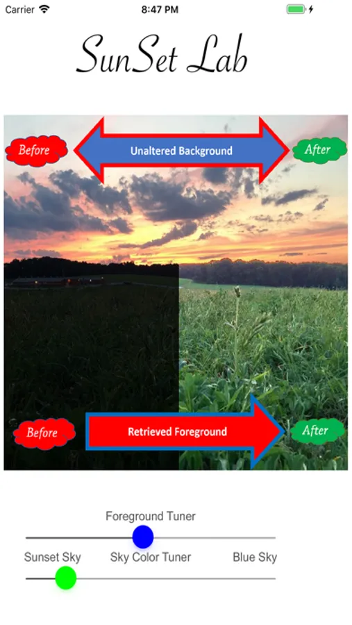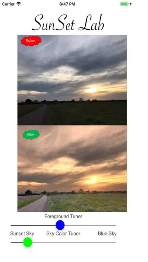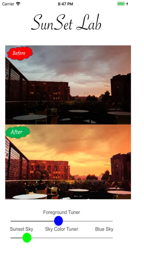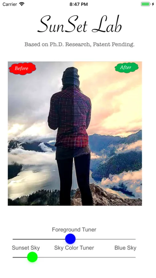 Problem Statement: Sunset photography is always challenging. It is due to the fact that you cannot take perfect image of both passive foreground and bright background in one picture. If you increase the sensitivity of the camera by tapping on the foreground, the bright background (sunset) goes saturated and if you tab on the bright background the foreground will be captured dark. The only solution would be a compromise and capture an image that has mediocre foreground and background. But this app solves the problem and retrieve an image with both perfect foreground and perfect background. Color of the sky, specially in sunset pictures, usually goes dull. This app retrieves the color of the sky without degrading the foreground.