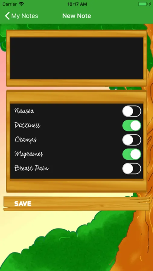 -Notes: make sure to enter your period symptoms every month (nausea, dizziness, abdominal pain, etc.) so that it's recorded and you can review it with your gynaecologist or family doctor.