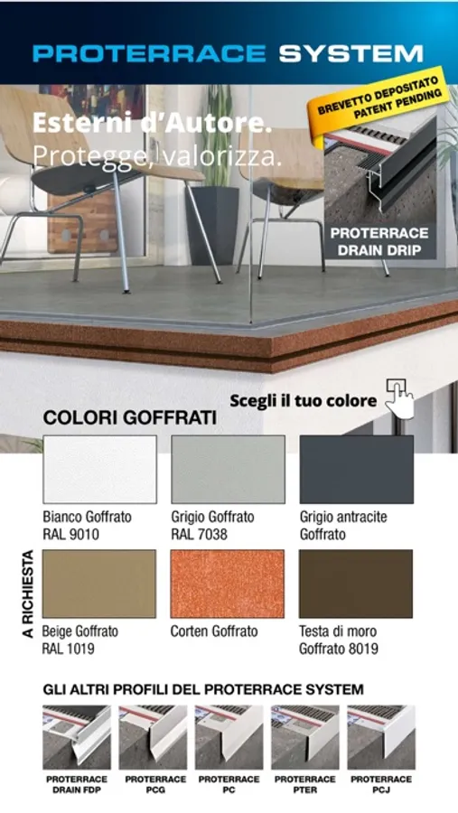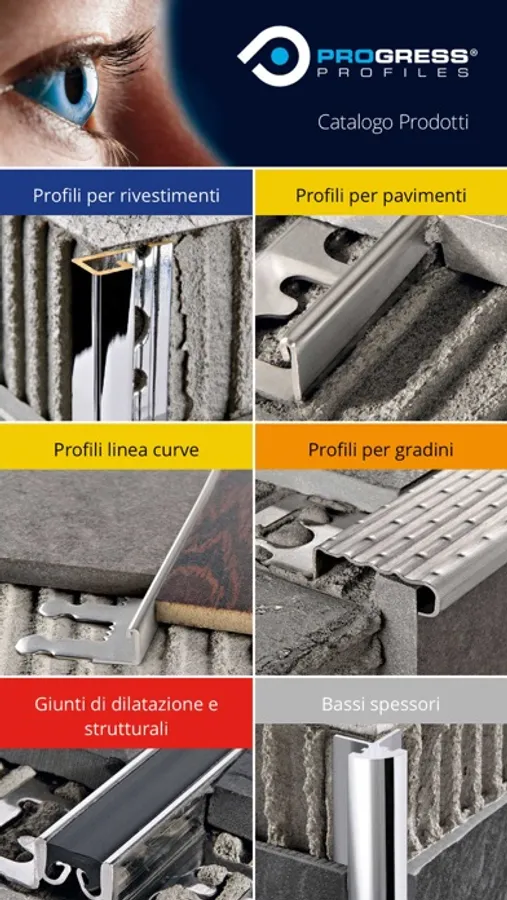 A wide and diversified range of products which includes over 12.500 technical and design solutions: profiles for walls, listels, skirtings, joint-cover profiles, step nosing profiles, movement and expansion joints, drip profiles, membranes for terraces, levelers, spacers for the building systems and the indoor and outdoor finishing touches for a perfect technical and aesthetical laying of floorings and coverings in ceramic tiles, wood, laminate, marble, carpeting, PVC, etc.