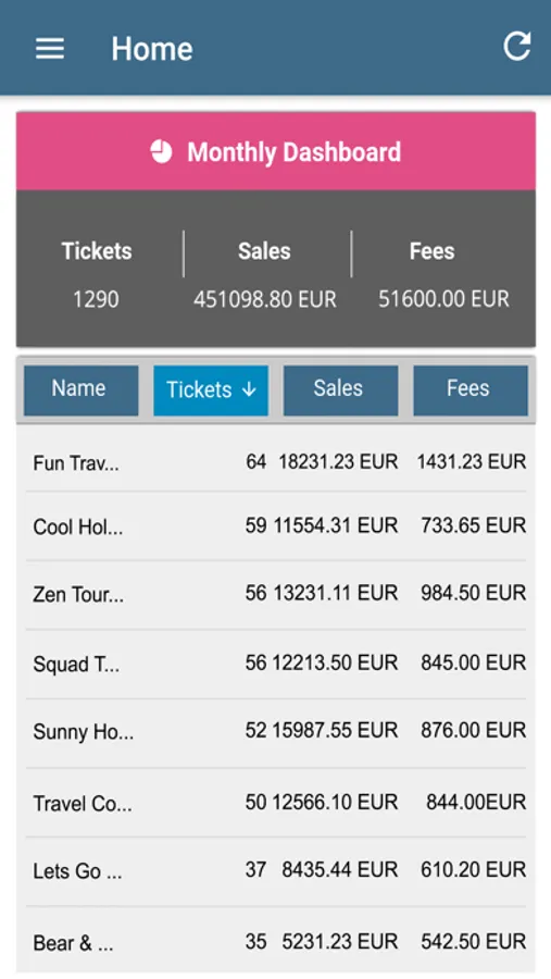 Summarises the sales of the current month allowing consolidation/host agencies to track their sub-agencies/independent agents’ sales activity.