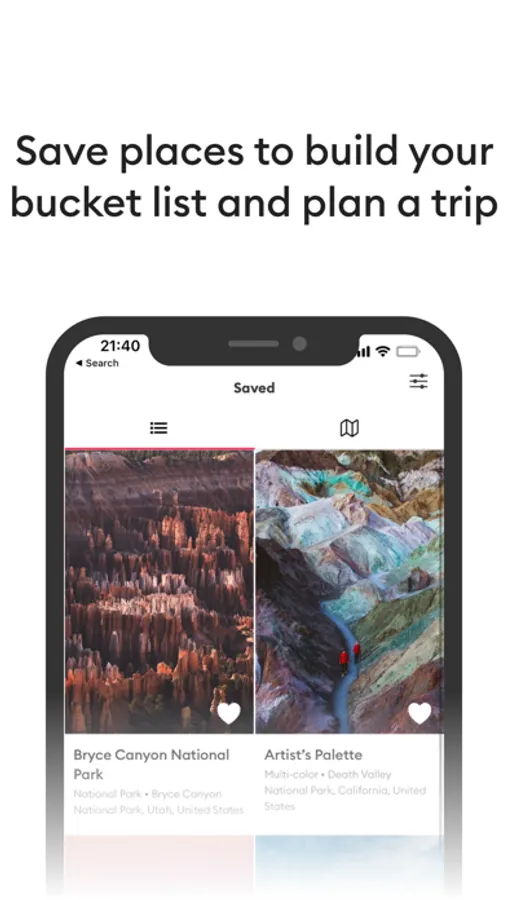 Build your bucket list by saving the places you like. With Viewbound, you can keep track of all your travel goals in one place and easily find inspiration for the next trip on your list.