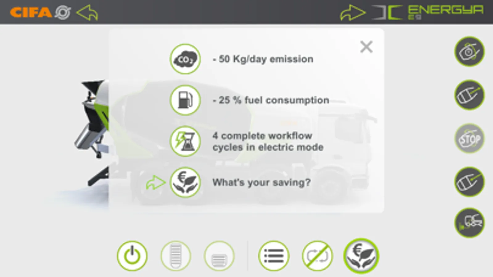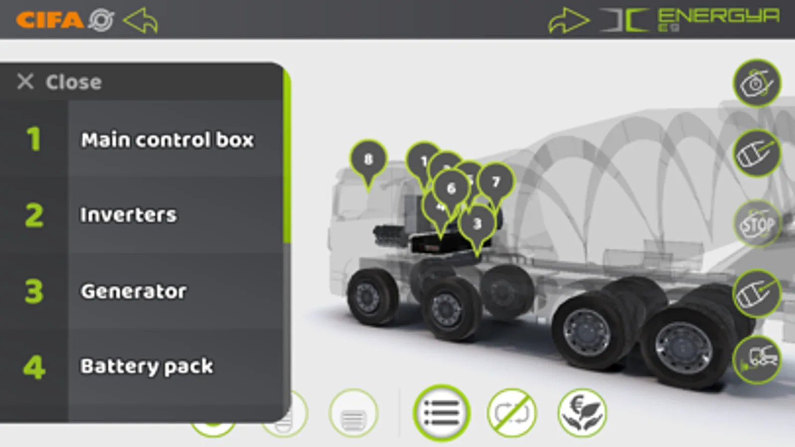 Discover in a virtual tour ENERGYA, the world first plug-in Hybrid truck mixer produced by CIFA.