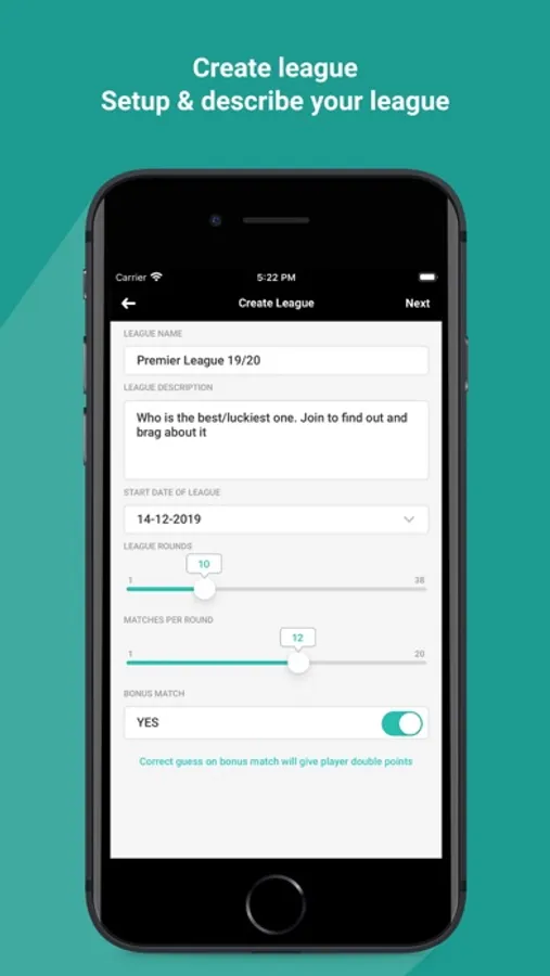 In an easy and simple setup, you choose a number of matches that you want to compete in, you guess who wins or whether it will be a draw and after each round the position is summed up and you can mock your friends.