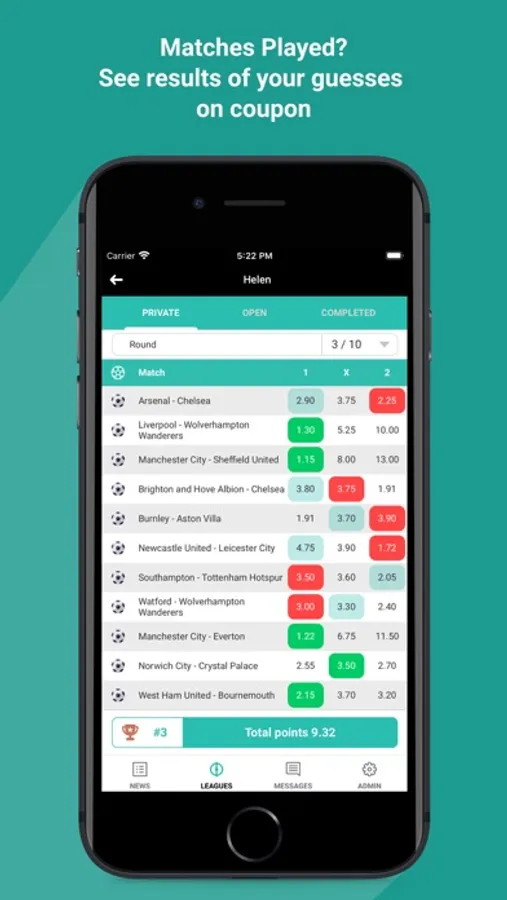We deliver the odds and keep track of points, you decide the matches and how many rounds you want your games to run. It could be the Premier League 2019/20, or ten mixed matches from the European leagues. It could also just be four Champions League matches on a Wednesday night with the friends.
