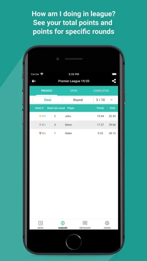 In our app you can combine these things and have the opportunity for daily or weekly pleasure in bragging, mocking, teasing and laughing at and with your friends, colleagues and others. You're playing in your own fantasy league.