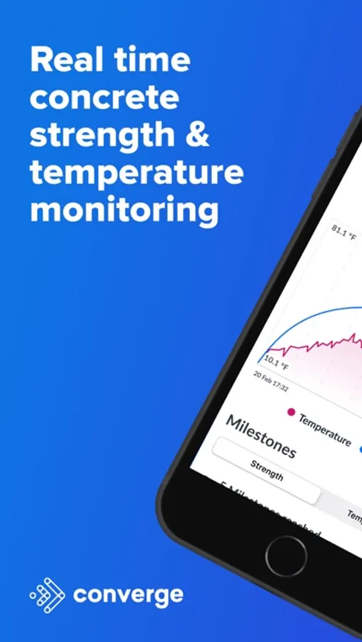 Converge sensors generate realtime strength and temperature measurements of concrete, which our system returns directly to the cloud, meaning you always have access to live data about your site, anytime, anywhere. The app now supports collection of measurements from Converge Signal sensors.