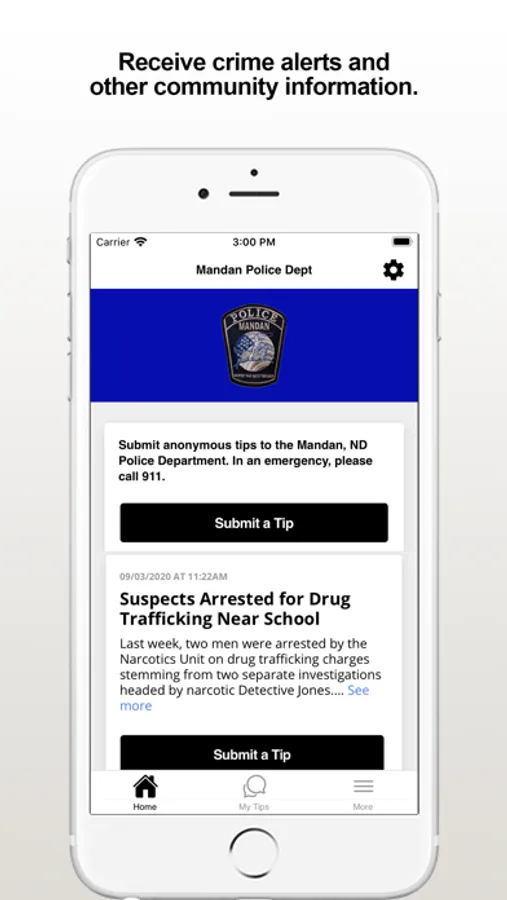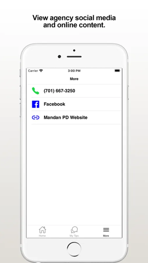 The Mandan PD app provides citizens the ability to submit anonymous tips to the Mandan, ND Police Department. The app also displays agency crime alerts, and other organization web and social media content.
